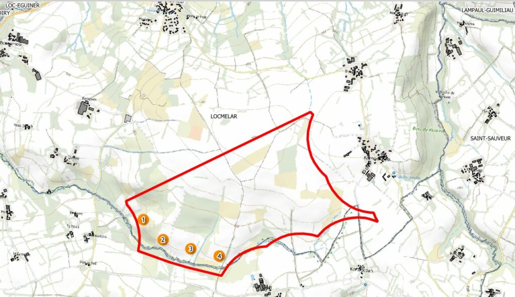 VALOREM, la SEM Énergies en Finistère et la commune de Locmélar étudient l’implantation de 4 éoliennes au sud de la commune.